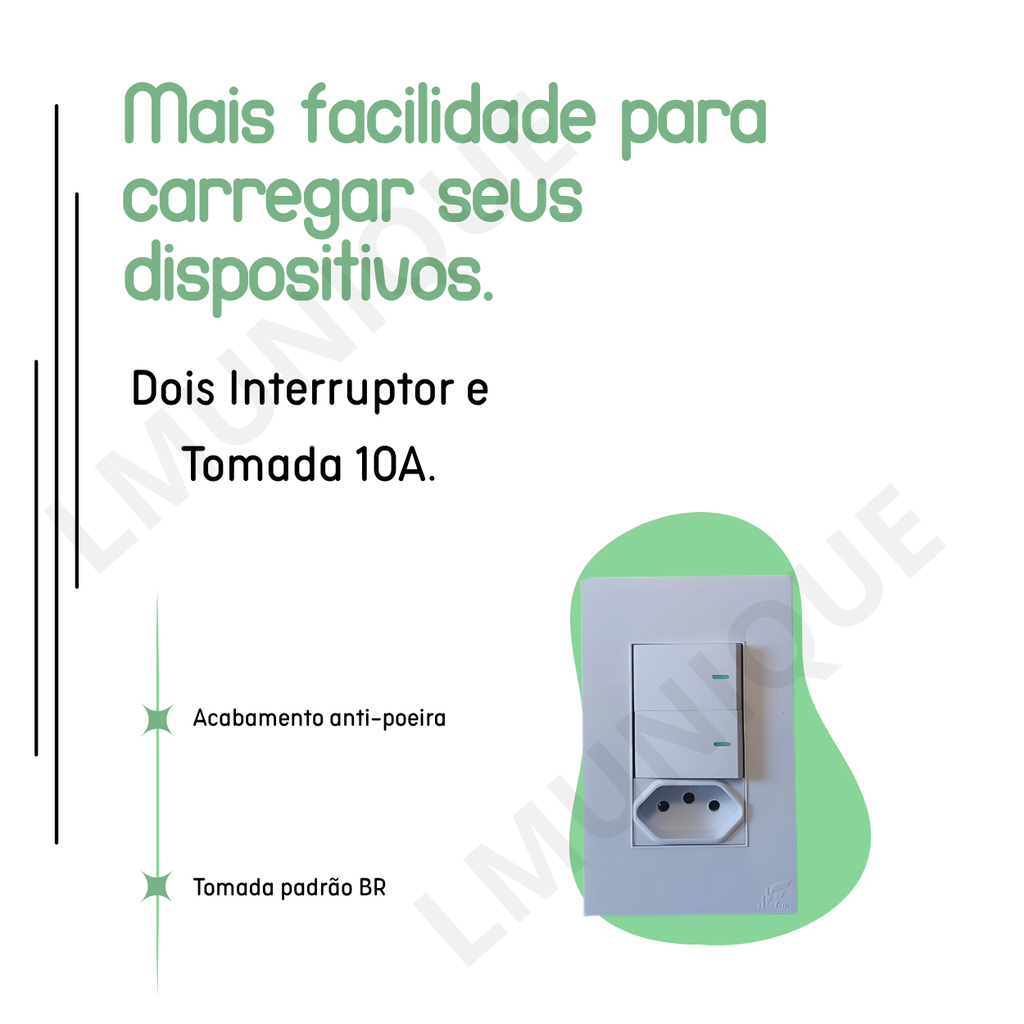 Incluso: 1 Tomada NBR 14136 + 2 Interruptores simples.